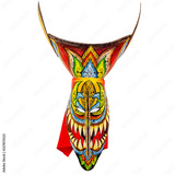 Vintage Phi Ta Khon mask from Ghost Festival, Thailand. Isolated on white background include clipping mask. Selective focus