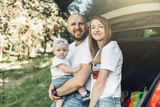 Outdoor Shot of Young Couple with Their Daughter in Love