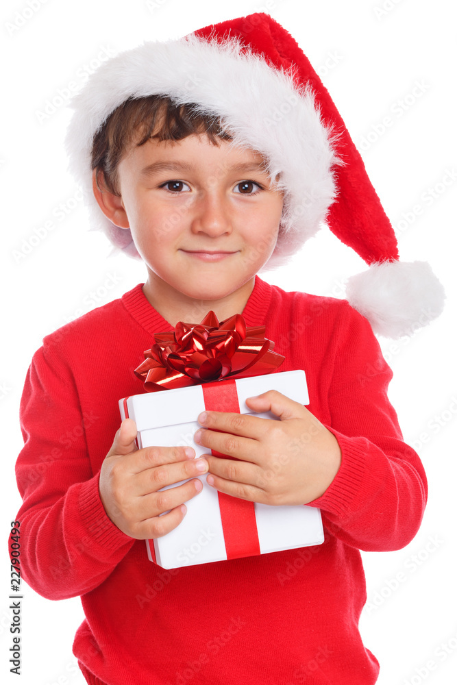 Kind Geschenk Junge Weihnachtsgeschenk Weihnachten Weihnachtsmann Nikolaus Überraschung freigestellt isoliert Freisteller