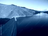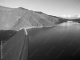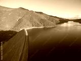 Talbingo Reservoir and dam wall with road at sunset. NSW, Australia
