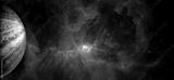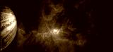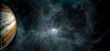 Pluto planet and fantastic galacy clouds and stars background. Elements of this image furnished by NASA