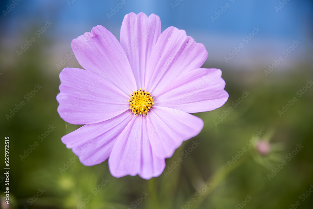 Pink space flower (Cosmos Bipinnatus) with blurred background