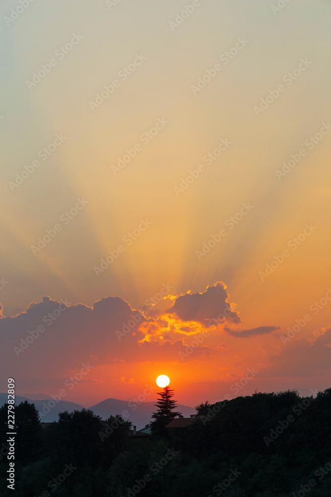 Sunbeams in the clouds at twilight, natural background