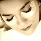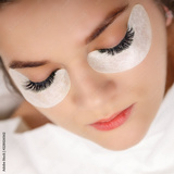 Eyelash Extension Procedure. Woman Eye with Long Eyelashes. Close up, selective focus.