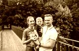Happy family in summer city park