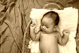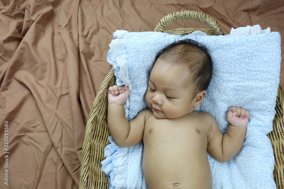 Asian Infant in to sleeping on wicker.