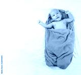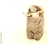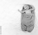 Asian Infant sleep on the bed and laughing of happy in concept of health and growth.