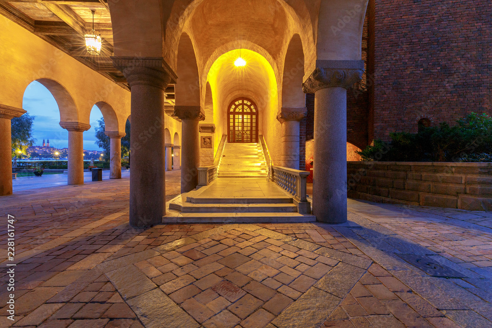 Stockholm. City Hall on the sunset.
