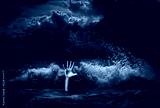 drowning man hand in storm sea water