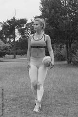 Young girl holding volleyball