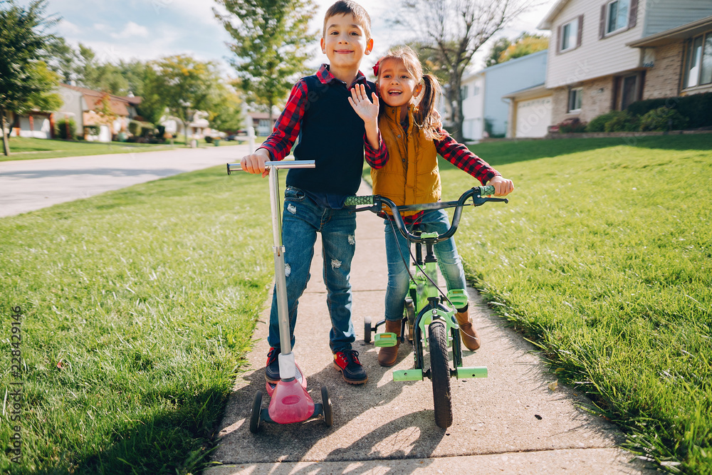 Little kids in a autumn park
