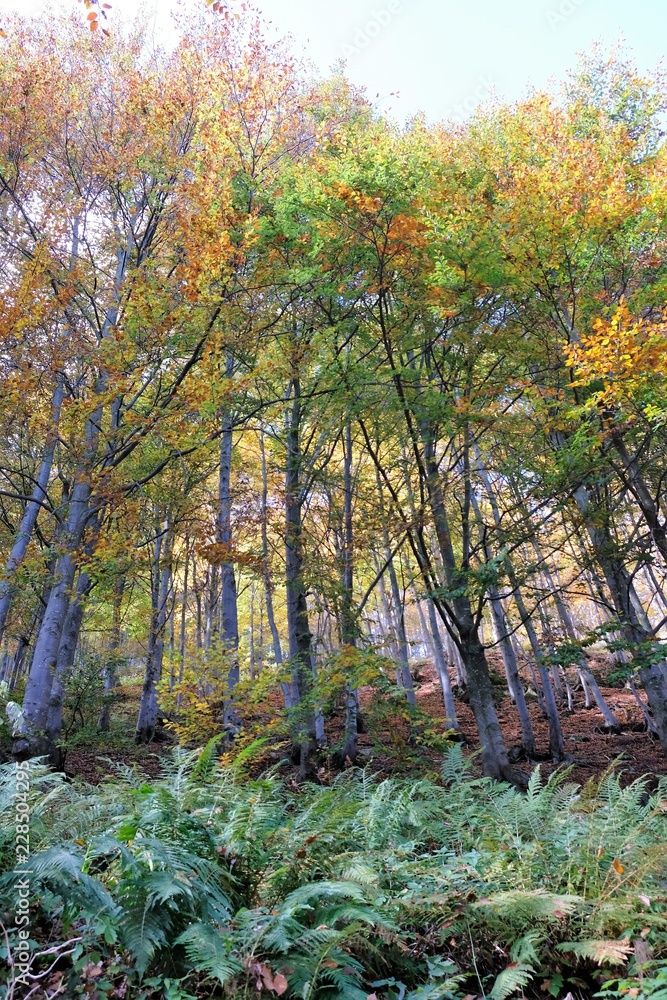 paesaggio foresta natura autunno alberi foglie giallo verde