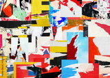 Collage ripped torn posters grunge creased crumpled paper texture background placard backdrop surface / High quality image dense pixel