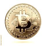 Physical bit coin. Digital currency. Cryptocurrency. Golden coin with bitcoin symbol isolated on white background. Bitcoin coin on white background.
