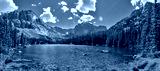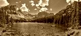 Photographer in Rocky Mountains The Noch lake with mountains panorama