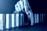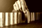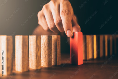 business man try to choose red color wood block from others on wooden table and black background business organization startup concept