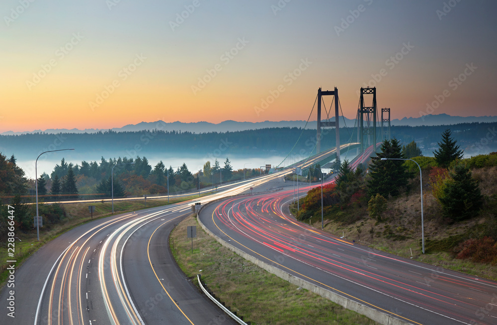 Two bridges over Puget sound, tacoma washington; narrows bridges