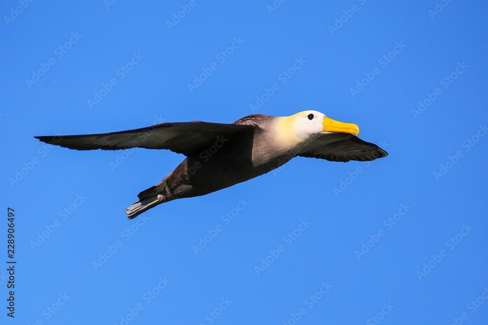 Waved albatross in flight on Espanola Island, Galapagos National park, Ecuador
