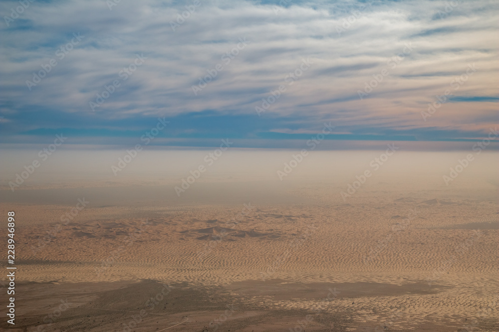 Panoramic view of hazy Arabian desert with sand dunes at Al Ain, UAE