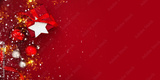 Christmas and New Year holiday background. Xmas greeting card. Christmas gifts on red background top view.