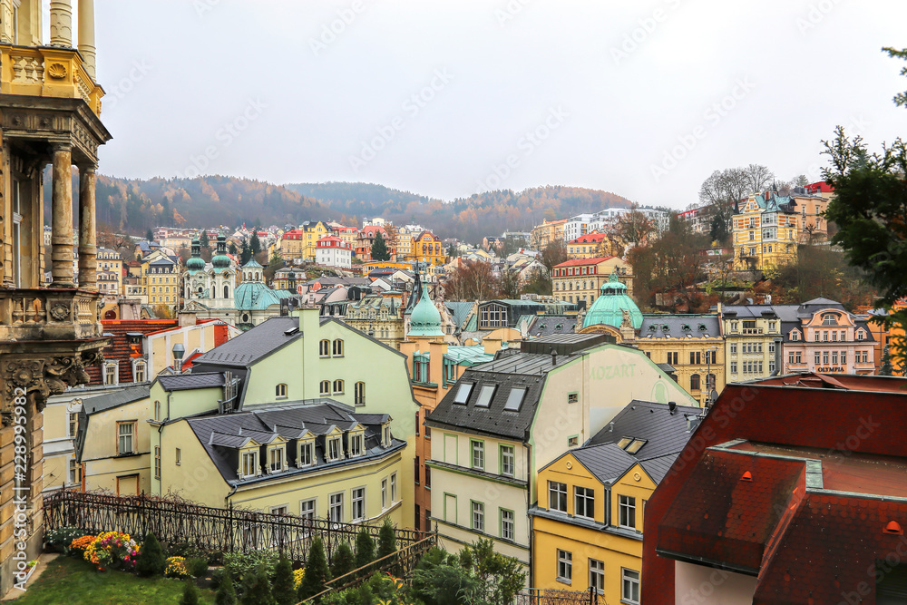 Cityscape of Karlovy Vary in autumn time, Czech Republic