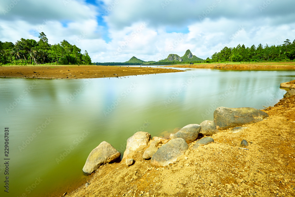 Notre Dame Auxiliatrice Church with distinctive red roof at Cap Malheureux, Mauritius, Indian Ocean