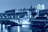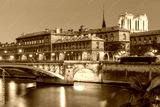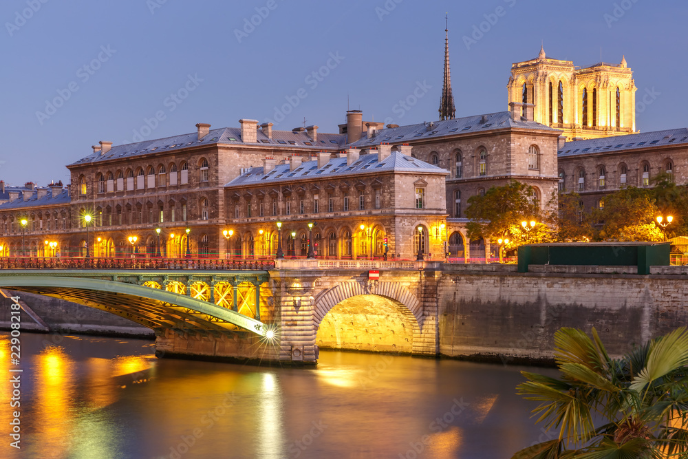 Night view of Ile de la Cite and Pont Notre-Dame in Paris, France