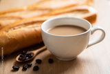 Cup of coffee and baguette french bread