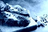 Raw Black Angus Prime meat steaks on wooden board copy space
