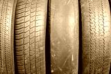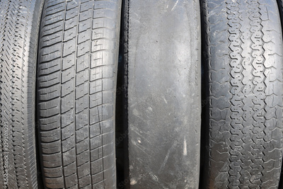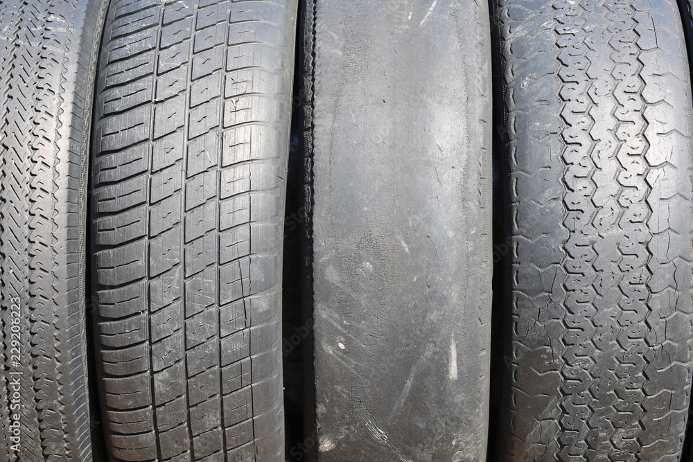 worn out bald old car tire close-up