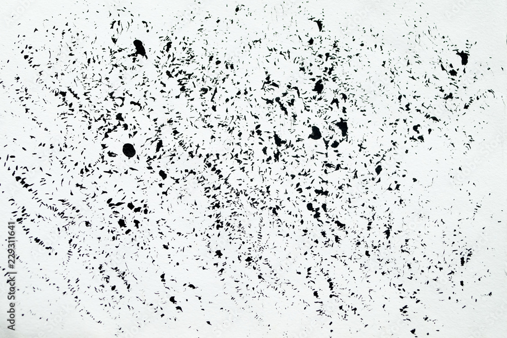 Abstract Chinese ink background. Black paint stroke texture on white paper.