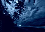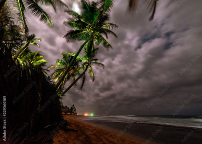 Coconut palms under moonlight. Tropical landscape