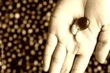 red cherry coffee bean in hands