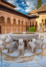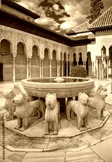The famous Lion Fountain in Alhambra palace in Granada, Spain