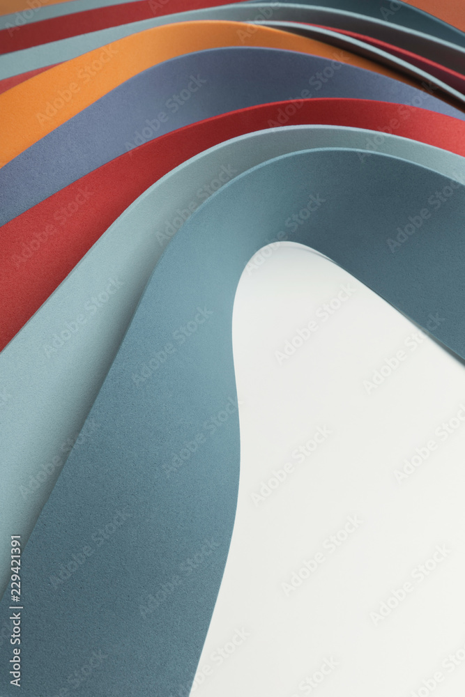 Colorful curved elements on white background, stripe waves