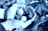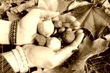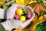 Autumn crops in the hands with colourful leaves