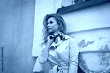 Beautiful fashionable woman in retro style is on the street
