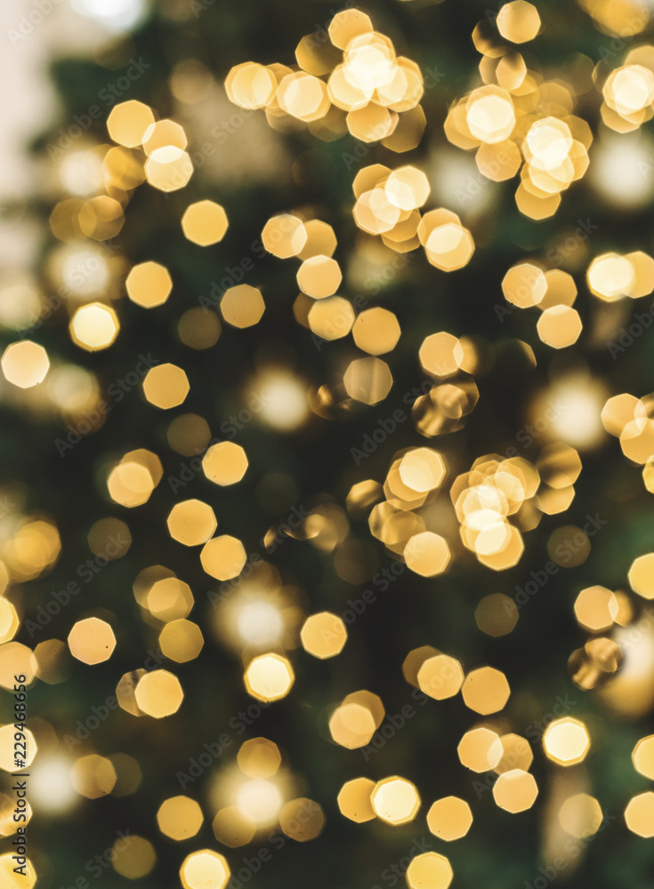 Christmas tree background with blurred, sparking, glowing. Happy New Year and Xmas theme.