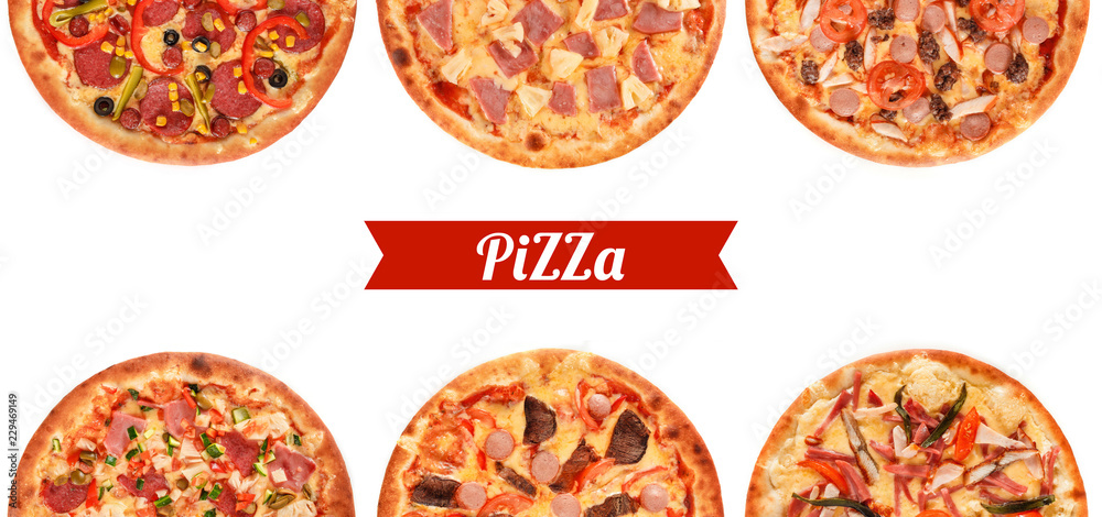 Big set of the best Italian pizzas isolated on white background