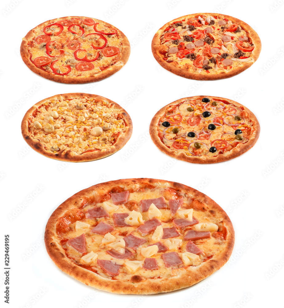 Big set of the best Italian pizzas isolated on white background