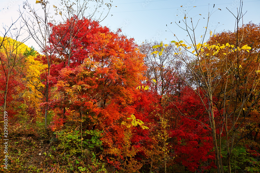 The maple red leaves of Benxi of China.