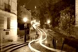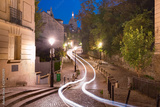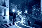 Empty cozy street and the Sacre-Coeur Basilica at night, quarter Montmartre in Paris, France