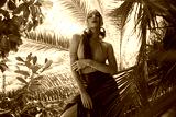Attractive young woman among the tropical plants.