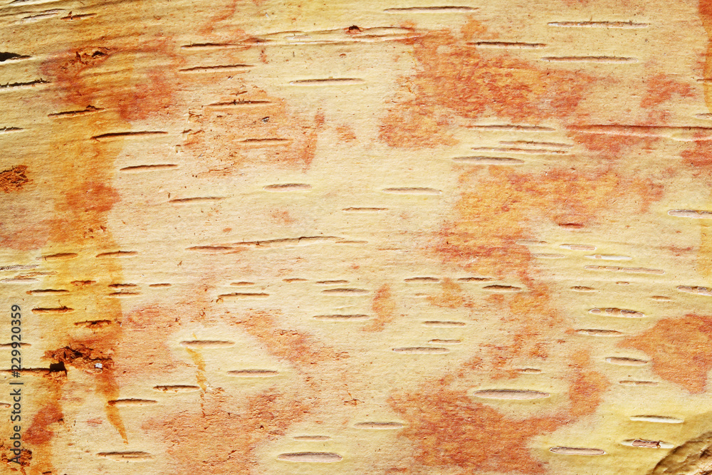 Brown birch bark of young birch with beautiful texture of inside of birch bark of birch tree
