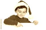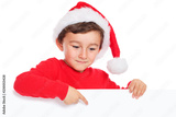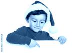 Kind Junge Weihnachtsmann Nikolaus Weihnachten zeigen Schild Textfreiraum Copyspace Freisteller
