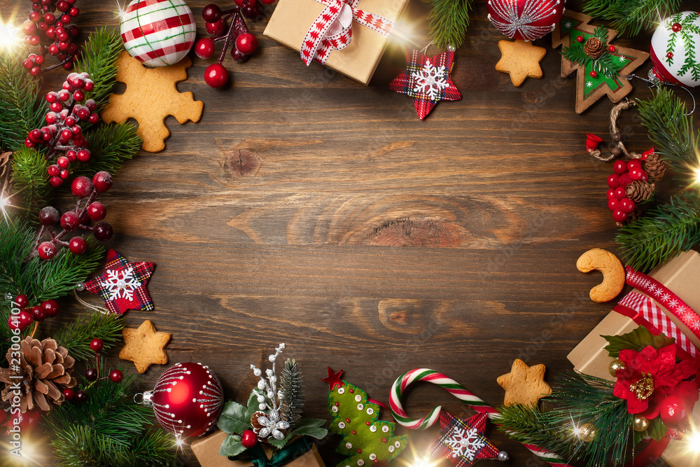 Christmas greeting card with Christmas decorations.