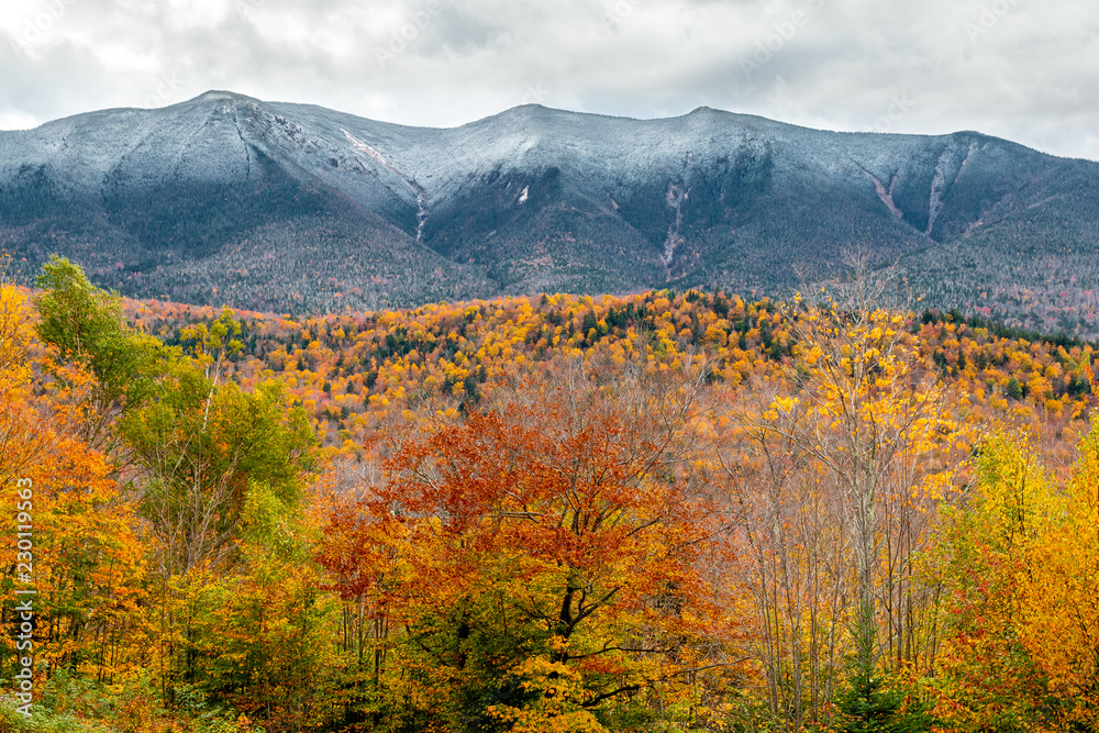 A beautiful fall landscape with amazing foliage. Picture taken in the White Mountains of New Hampshire.