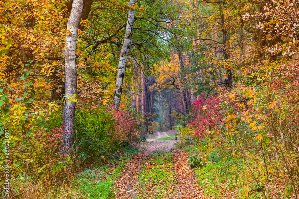 quiet beautiful autumn red dry forest