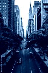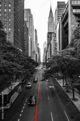 Infinite Manhattan red highlighted street mark leading downwards to intersection