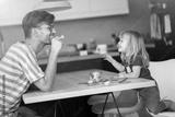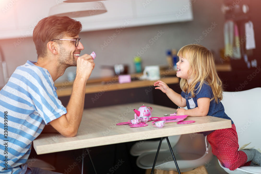 Father and daughter having a tea party at home